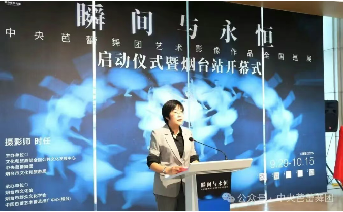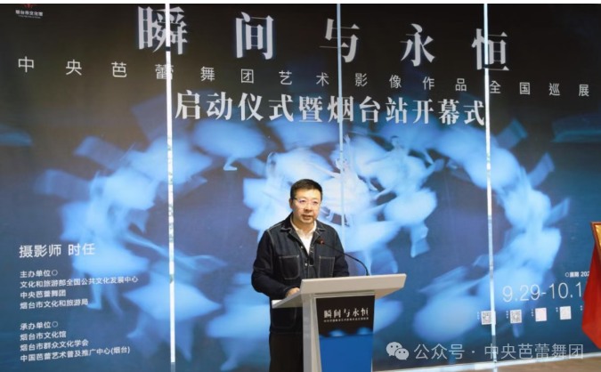 日前,由文化和旅游部全国公共文化发展中心、中央芭蕾舞团、烟台市文化和旅游局主办,烟台市文化馆、烟台市群众文化学会、中国芭蕾艺术普及推广中心(烟台)承办的“瞬间与永恒——中央芭蕾舞团艺术影像作品全国巡展”启动仪式暨烟台站开幕式在烟台市文化馆展览厅隆重举行。烟台市文化馆馆长张硕主持开幕式。