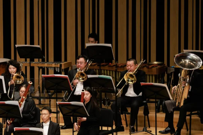 由作曲家于京君创作的《交响三章》是京津冀协同发展战略时代背景下的生动艺术实践,巧妙化用京、津、冀三地的特色音乐素材,以交响乐的表现方式赋予这些耳熟能详旋律新的生命力。指挥家张艺精准把握作品结构与情绪,从容引领乐团以清晰的层次和饱满的张力展现作品的多维侧面。《京华韵》融合单弦、鼓书、京剧元素,尽显古都气韵;《津门情》以天津时调与快板律动为脉络,旋律亲切动人,满溢津门烟火气;《燕赵风》融合了以河北梆子为主要代表的众多地方音乐元素,节奏热烈、气势昂扬,作品结尾三地曲调交织相融、壮美非凡,寓意京津冀协同发展的壮阔前景。特别值得一提的是,《交响三章》的创作者、华人作曲家于京君老师亲临演出现场,向舞台上音乐家们的精彩演奏致意,也接受全场观众的掌声致敬。