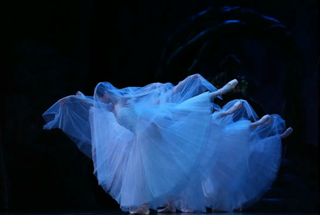 剧中第二幕月光下的白纱幽灵群舞,堪称芭蕾史上极具标志性的经典场面。舞台薄雾轻笼,因情伤逝去的“维丽丝”翩然起舞,空灵凄美又极具艺术张力,以极致的舞台美学勾勒出爱恋与救赎的深刻主题。