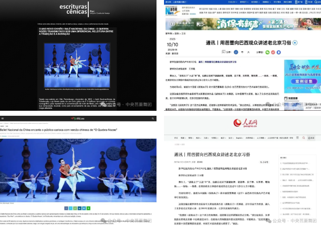 在巴西巡演期间,中央广播电视总台、中新社、巴西国家电视台等中外主流媒体争相报道;中芭的演出在各个城市收获了无数的赞誉。