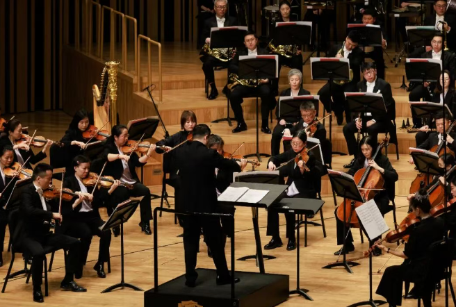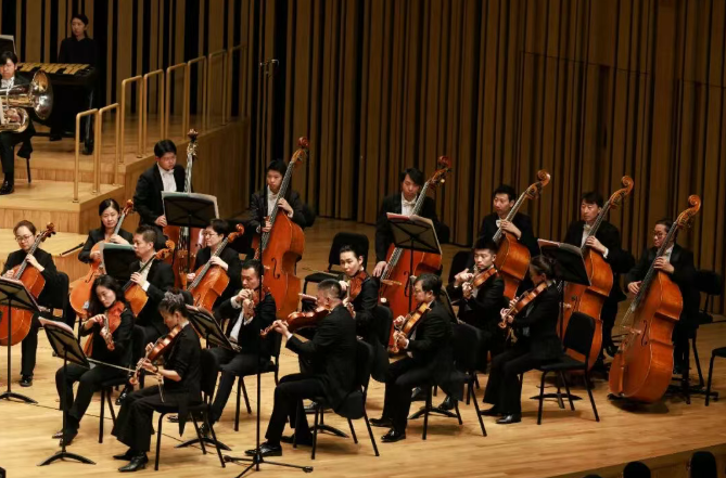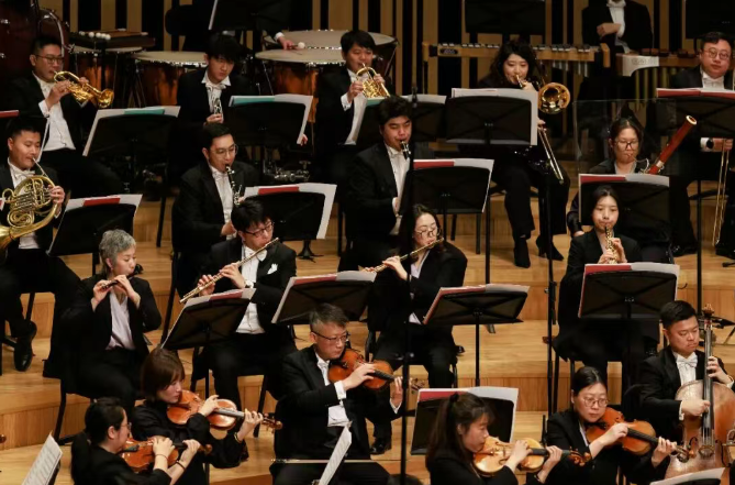由作曲家于京君创作的《交响三章》是京津冀协同发展战略时代背景下的生动艺术实践,巧妙化用京、津、冀三地的特色音乐素材,以交响乐的表现方式赋予这些耳熟能详旋律新的生命力。指挥家张艺精准把握作品结构与情绪,从容引领乐团以清晰的层次和饱满的张力展现作品的多维侧面。《京华韵》融合单弦、鼓书、京剧元素,尽显古都气韵;《津门情》以天津时调与快板律动为脉络,旋律亲切动人,满溢津门烟火气;《燕赵风》融合了以河北梆子为主要代表的众多地方音乐元素,节奏热烈、气势昂扬,作品结尾三地曲调交织相融、壮美非凡,寓意京津冀协同发展的壮阔前景。特别值得一提的是,《交响三章》的创作者、华人作曲家于京君老师亲临演出现场,向舞台上音乐家们的精彩演奏致意,也接受全场观众的掌声致敬。