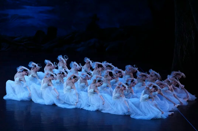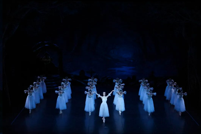 剧中第二幕月光下的白纱幽灵群舞,堪称芭蕾史上极具标志性的经典场面。舞台薄雾轻笼,因情伤逝去的“维丽丝”翩然起舞,空灵凄美又极具艺术张力,以极致的舞台美学勾勒出爱恋与救赎的深刻主题。