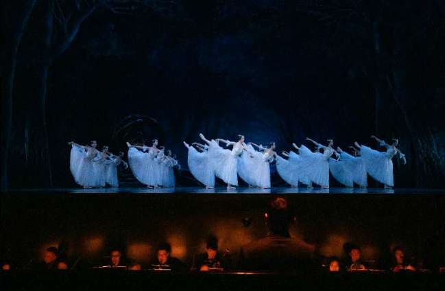 《吉赛尔》第一幕明媚温暖的田园景致与第二幕清冷幽寂的林间幻境形成鲜明对比。在音乐总监张艺的执棒下,阿道夫·亚当的经典交响配乐现场奏响,将全场观众带入浓郁的19世纪浪漫主义氛围之中。