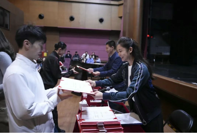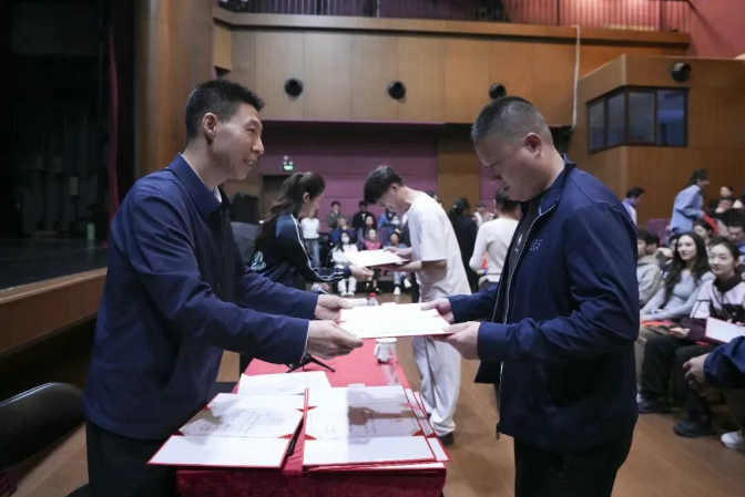 团领导为受表彰者颁发证书