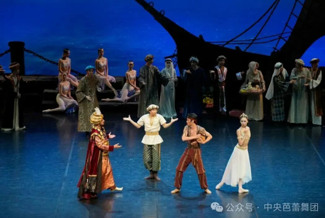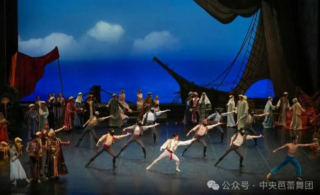 伴随着磅礴的音乐奏响,舞台之上光影营造的狂风巨浪中,一艘巨大的海船飘摇前行,开启了这个充满英雄色彩的传奇诗篇。从海滩之畔的患难相助,到奴隶市场上的仗义出手,再到海盗营地内的惊险时刻,以及总督府内的巧妙营救,整部舞剧的编排结构紧凑有致、情节跌宕动人,深深牵动着在场的每一位观众的心。这样的演出效果正是中芭年轻的创作团队在保留原作艺术精华的基础上大胆创新的成果,他们不仅为人物的戏剧表演增加了密度,将剧情整合梳理得更丝丝入扣,同时还根据中芭的艺术特色及演员们的特长新创了五段舞蹈与音乐,为这部经典的作品注入了全新的活力。