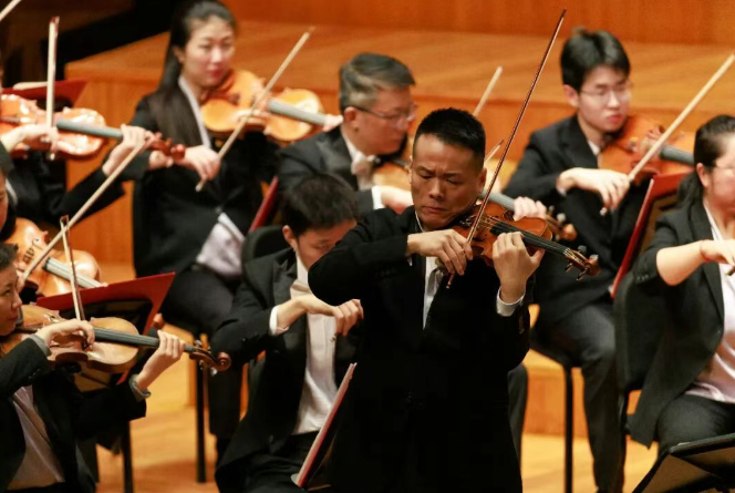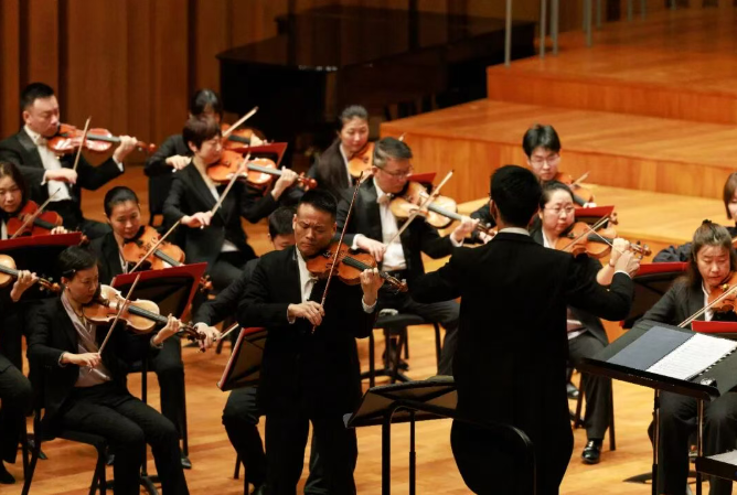 随后,中央芭蕾舞团音乐总监助理、中芭交响乐团首席、小提琴演奏家王小毛与乐团联袂奉献了门德尔松艺术成熟阶段的经典作品《e小调小提琴协奏曲》。从全曲伊始小提琴飘然而至的主题旋律开始,小提琴家王小毛就展现出卓越的艺术素养,甜美如歌的细腻琴声、与乐团默契自如的交织对话、炫技繁复的华彩展示都在他的弓弦之下展现出旖旎悠然之美。在末乐章此起彼伏的竞奏中,快速精确的音符跑动宛如精灵跃动舞蹈,毫无悬念地收获了全场观众的热情掌声。